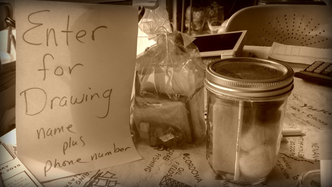 Artists have a drawing for a chance to win one of their items. All you need to do is fill out a slip of paper with your name and phone number and you will be contacted if you win.