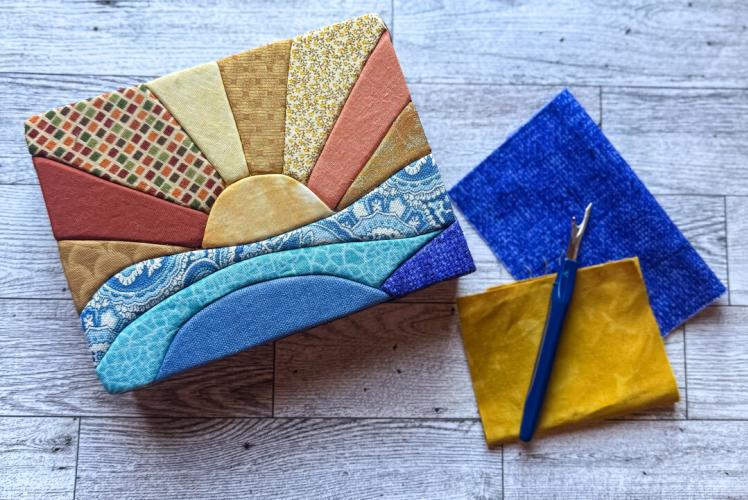 In this hands-on workshop, you’ll be guided step by step as you create a textured fabric artwork inspired by a peaceful sunrise over ocean waves with simple tucking techniques with no sewing required.