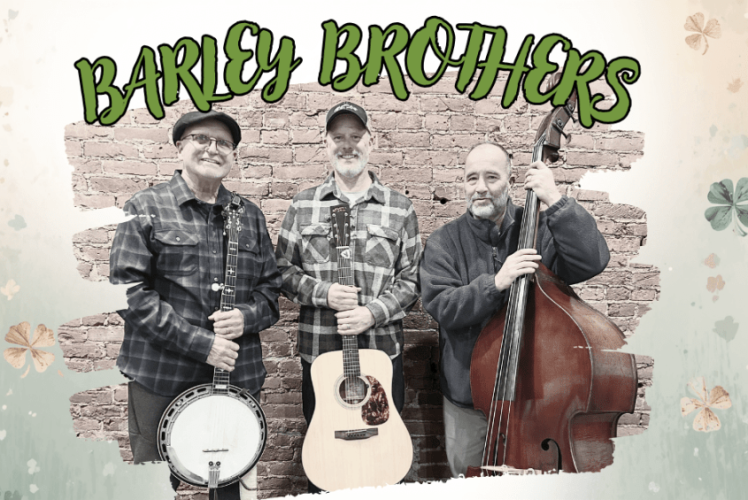 The Barley Brothers play a rollicking variety of Irish Folk music and Pub Songs. The trio consists of Jim Nelson (guitar), Mario Friedel (banjo), and Jamie Bowers (stand-up bass). They're bringing all of the excitement and shenanigans that go with the St. Patty's Day season.
