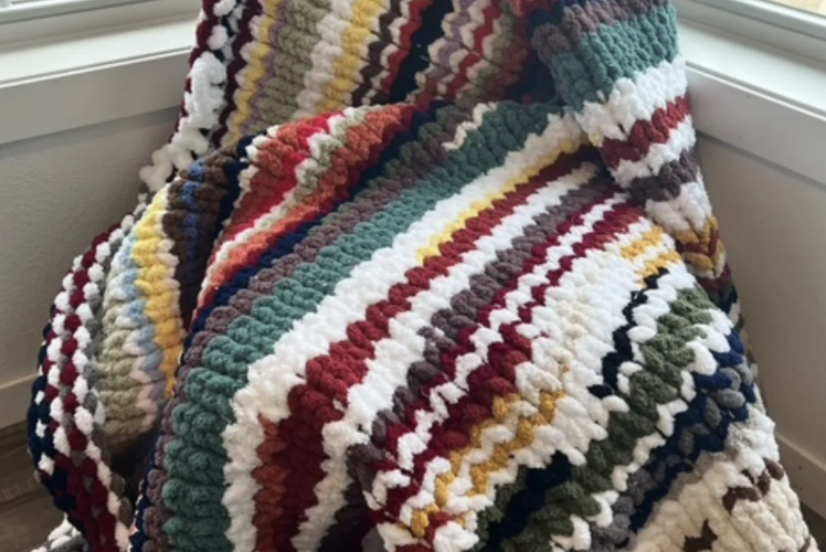You'll be using only your hands to make this blanket. Bring 4-5 skeins of Bee Eternal Bliss Yarn. Limited seats. Complimentary glass of wine.