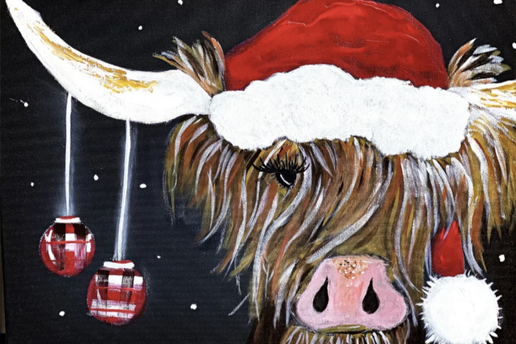 Enjoy a free-hand painting party with your choice of Helsa or Elle the adorable Sparkle Cows, on a 16x20 pre-sketched canvas. Tickets include a drink (NA drinks available.)