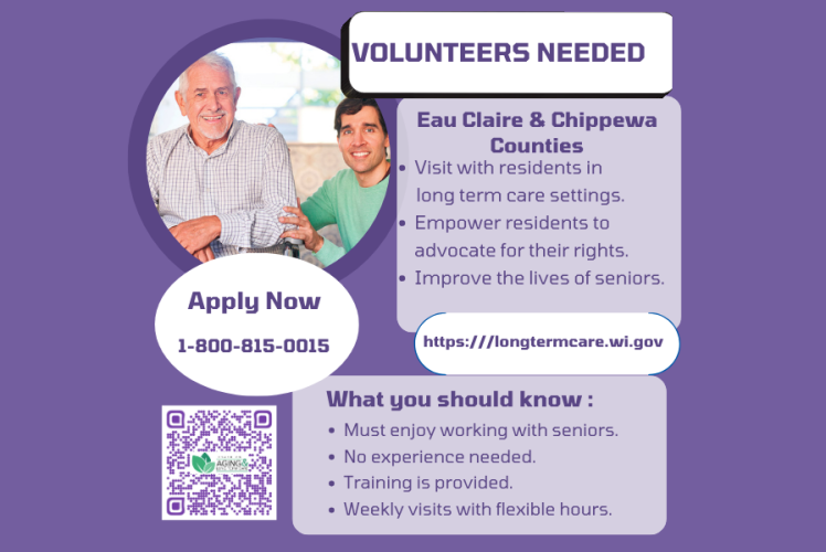 The Volunteer Ombudsman Program with Board on Aging and Long-Term Care is seeing advocates to become a friendly visitor at assisted living and memory care facilities in Eau Claire, Chippewa and Clark Counties. No experience needed and training is provided. The volunteer will visit with residents and empower them to live with respect and dignity.