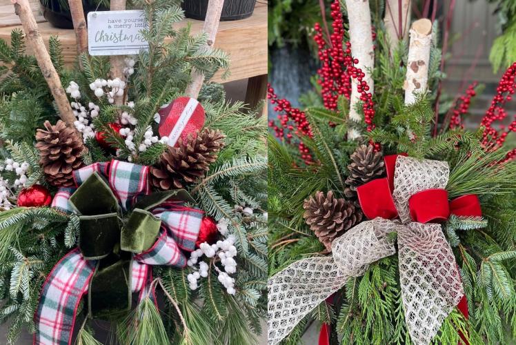 Adorn your front porch with a fresh evergreen porch pot. Includes evergreens, pot, and soil. Other decor available at cost.